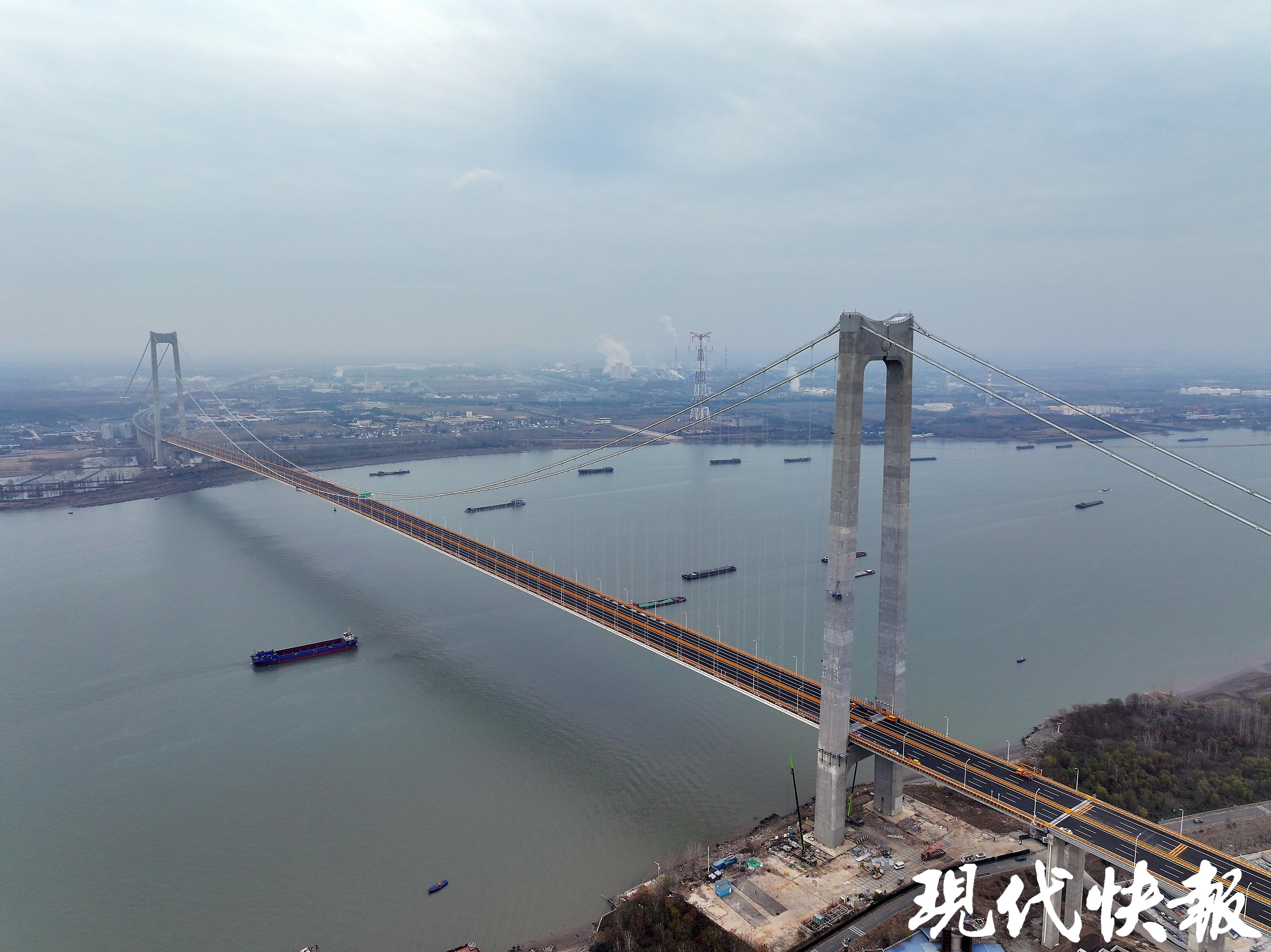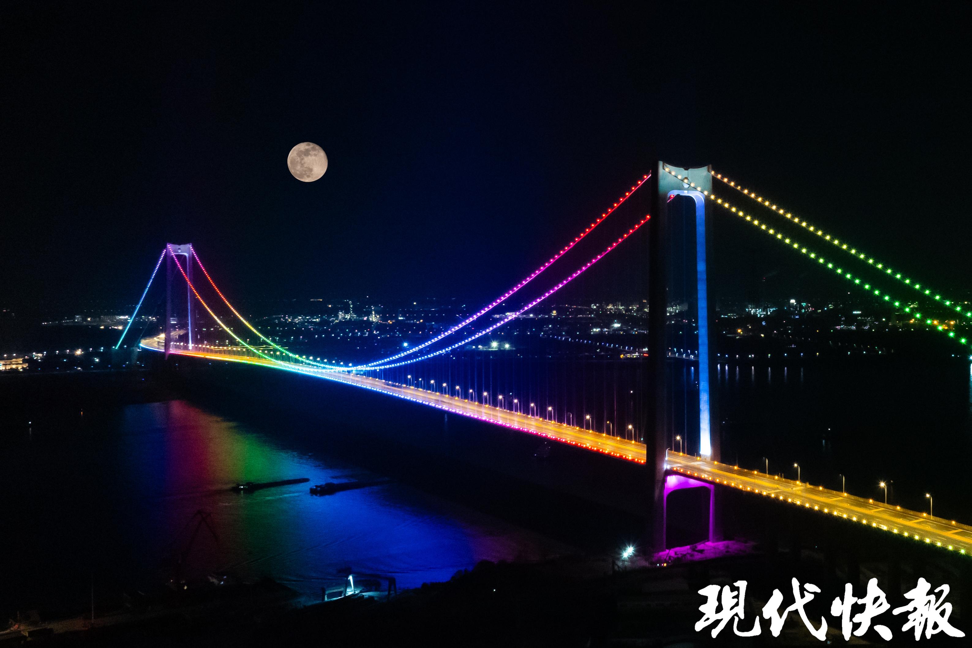 值得一提的是,大桥主塔在设计上结合了南岸龙潭、北岸龙山的文化意象,采用“二龙戏珠”景观造型,悬索桥流畅的线型在宽阔的江面独具美感,实现了大桥建设与生态环境的和谐发展。