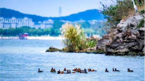 鸳鸯的翩跹而至为鼋头渚增添了灵动风景,越来越多的市民游客慕名而来,在欣赏湖光山色的同时,感受生物多样性的魅力。据悉,野鸭、鸬鹚均已抵达太湖,西伯利亚小天鹅、红嘴鸥等“候鸟天团”也正在南迁途中,太湖“候鸟季”即将浪漫开启。随着生态环境的持续改善,“观鸟游”“生态游”逐渐成为锡城新风尚。
