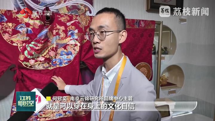 南京云锦研究所品牌中心主管何冠奕说:“工艺上的提升、面料上新材质的使用,像凤凰的尾羽上用到了新的材料叫做玉翎线。它有不一样的光泽感,让我们博物馆的藏品可以走到大家的生活当中,可以穿在身上的文化自信。”