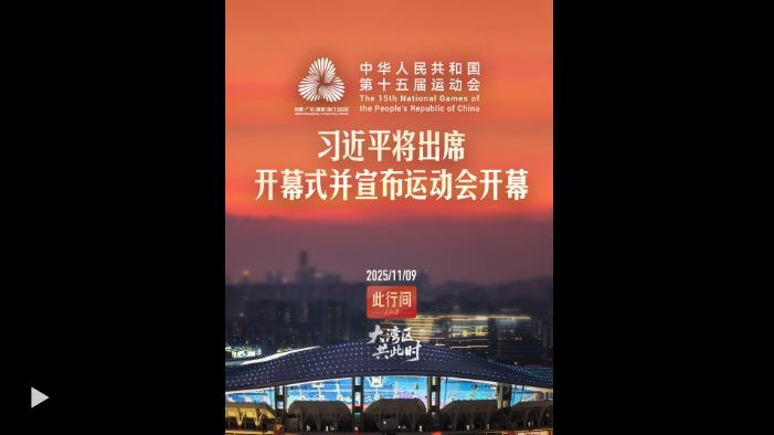 9日晚,习近平将出席中华人民共和国第十五届运动会开幕式并宣布运动会开幕。这是粤港澳三地的闪耀时刻,是全民全运的拼搏舞台,是神州大地的奋斗号角。大湾区共此时,共同期待!