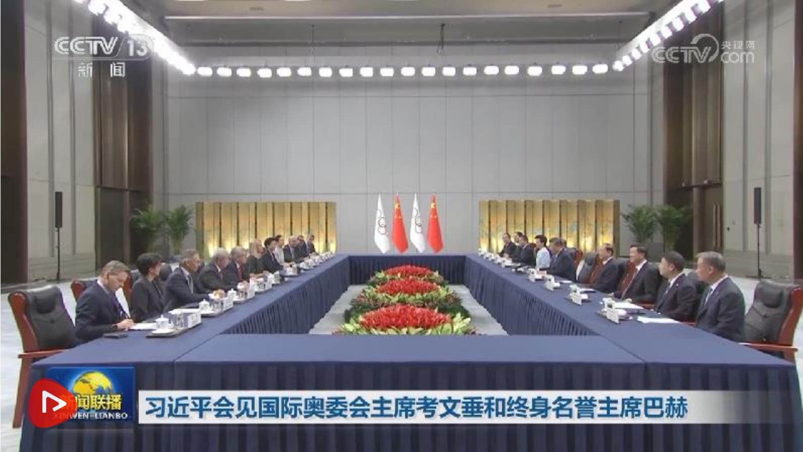 11月9日下午,国家主席习近平在广州白云国际会议中心会见来华出席第十五届全国运动会开幕式的国际奥委会主席考文垂和终身名誉主席巴赫。