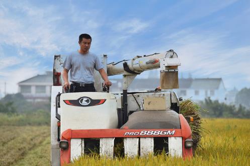 登峰家庭农场的成功,并没有让程雪峰满足于“一花独放”。作为长南村乃至周庄镇种粮大户的带头人,他深知“共同富裕”的分量。积极发挥“领头雁”作用,程雪峰主动分享种田技能,把自己变成了远近闻名的“田秀才”,带着附近农户把水稻亩产从800斤提高到了1400斤。家里自家购买的100多台(套)大型农机设备,他也共享给周边小农户使用,提供从育秧、插秧到植保、收割、烘干的全程社会化服务。