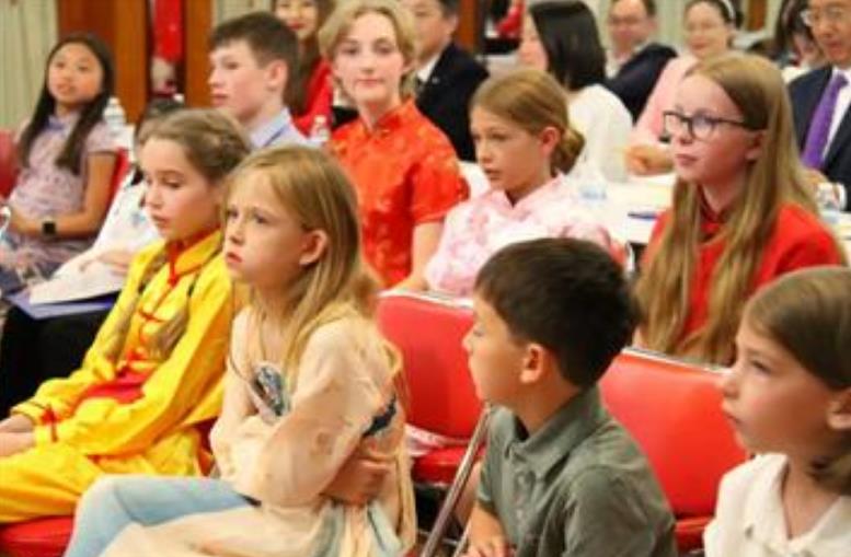 △2024年6月,20名来自美国中西部地区8所中、小学的学生齐聚中国驻芝加哥总领馆,参加第四届美国中西部“汉语桥”初中小学中文秀决赛。