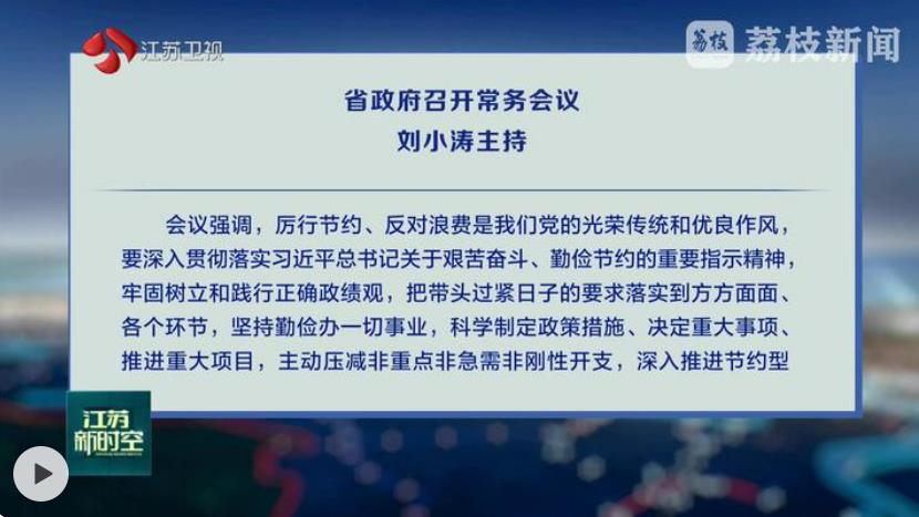 11月14日,省政府召开常务会议,深入学习贯彻党的二十届四中全会精神和习近平总书记重要讲话重要指示精神,认真落实《党政机关厉行节约反对浪费条例》及相关文件要求,学习贯彻《生态环境监测条例》,听取全省电动自行车安全“一件事”全链条治理情况汇报,研究推动游艇业发展的政策措施,部署安排下一阶段重点工作。省长刘小涛主持会议。