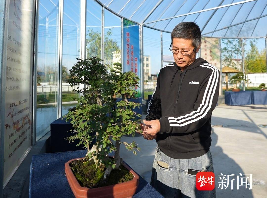 为提升产品附加值,镇村组织工匠大师开展传帮带培训,江苏省乡村工匠名师、宿迁市非物质文化遗产代表性项目传承人方武建成“一方园”技艺传习所,将自己发明的水旱盆景浅盆专利免费教给村民,帮助他们在直播中推广,让盆景技艺更好服务消费者,走进更多普通家庭。