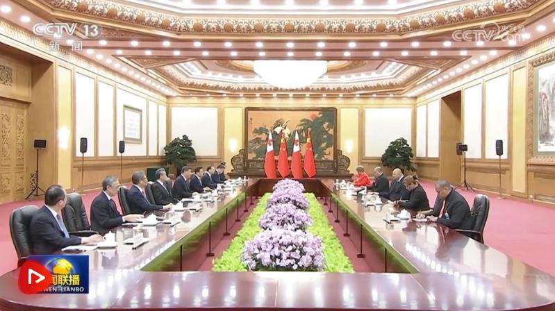 会见后,两国元首共同见证签署经贸、医疗、教育、发展等领域多份合作文件。
