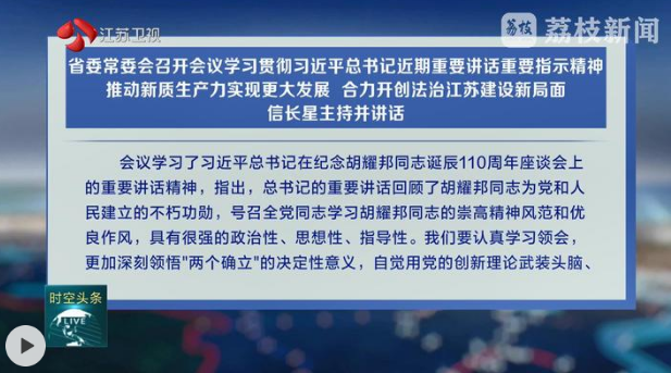 会议学习了习近平总书记在《求是》杂志发表的重要文章《因地制宜发展新质生产力》,强调,“十五五”时期,党中央把因地制宜发展新质生产力摆在更加突出的战略位置。江苏肩负着习近平总书记赋予的“成为发展新质生产力的重要阵地”重大使命,要深入学习领会总书记这篇重要文章的核心要义和实践要求,同深入学习贯彻党的二十届四中全会精神紧密结合,加快打造具有国际竞争力的先进制造业基地和具有全球影响力的产业科技创新中心,推动新质生产力实现更大发展,为现代化建设奠定更加坚实的物质技术基础。