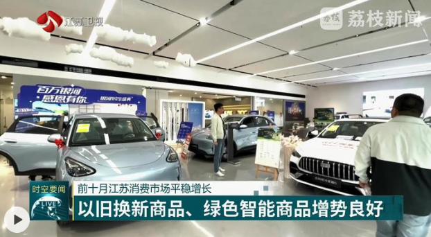 江苏省统计局最新发布数据显示,今年以来,全省消费市场保持平稳增长。特别是10月当月,餐饮收入、部分以旧换新商品及绿色智能商品销售增长较好。