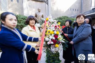4位烈士后人代表站在周恩来铜像下,相继发言。吴石烈士孙女吴红现场致辞表示,爷爷的一生,是胸怀家国、追求真理的一生。“1947年4月,爷爷与中共上海局领导建立了工作关系,开始了我党隐蔽战线工作,向我党提供了一系列国民党核心情报。他冒着生命危险,一次次在深夜登上往返南京上海的列车,将情报送出,送到上海地下党组织。”