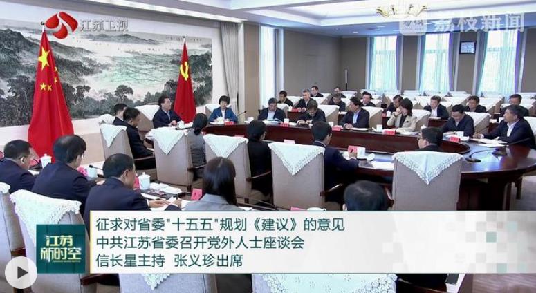 近日,中共江苏省委召开党外人士座谈会,深入学习贯彻中共二十届四中全会精神,就中共江苏省委关于制定江苏省国民经济和社会发展第十五个五年规划的建议,听取各民主党派省委会、省工商联负责人和无党派人士代表的意见建议。省委书记信长星主持会议并讲话。省政协主席张义珍出席。
