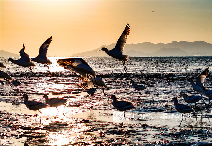 11月3日,连云港市赣榆海州湾沿海湿地,包括反嘴鹬在内的大批候鸟来此栖息繁殖。司伟摄 视觉江苏网供图