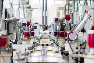 在苏州市吴中区的绿的谐波传动科技股份有限公司,自动导向车沿着预设路径精准穿梭运送物料,六轴机械臂“指尖”轻提齿轮坯料,稳稳对接高速旋转的数控机床。机床旁闪烁着蓝光的智能检测台,仅需3秒即可完成减速器验核。
