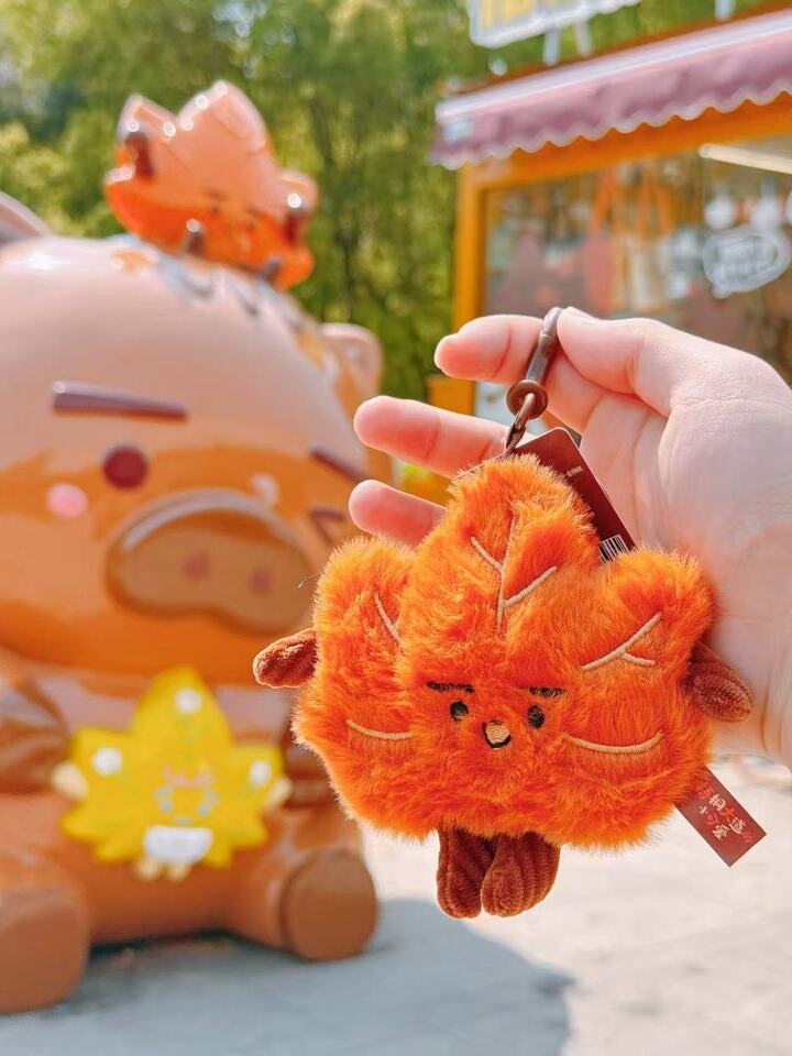 这以南京的“绿色名片”梧桐叶为原型,聚焦秋日的浪漫底色。被赋予的人设是:虽经风雨洗礼,却始终扬起笑脸的“小可怜”。这份“于困境中向阳而生”的韧性,让IP成为能蕴含情绪、传递温度的情感载体,也契合当代人对温暖与力量的精神渴求。“让游客带走的不只是一件商品,而是一段嵌在梧桐光影里的南京城市记忆。”陶陶直言。