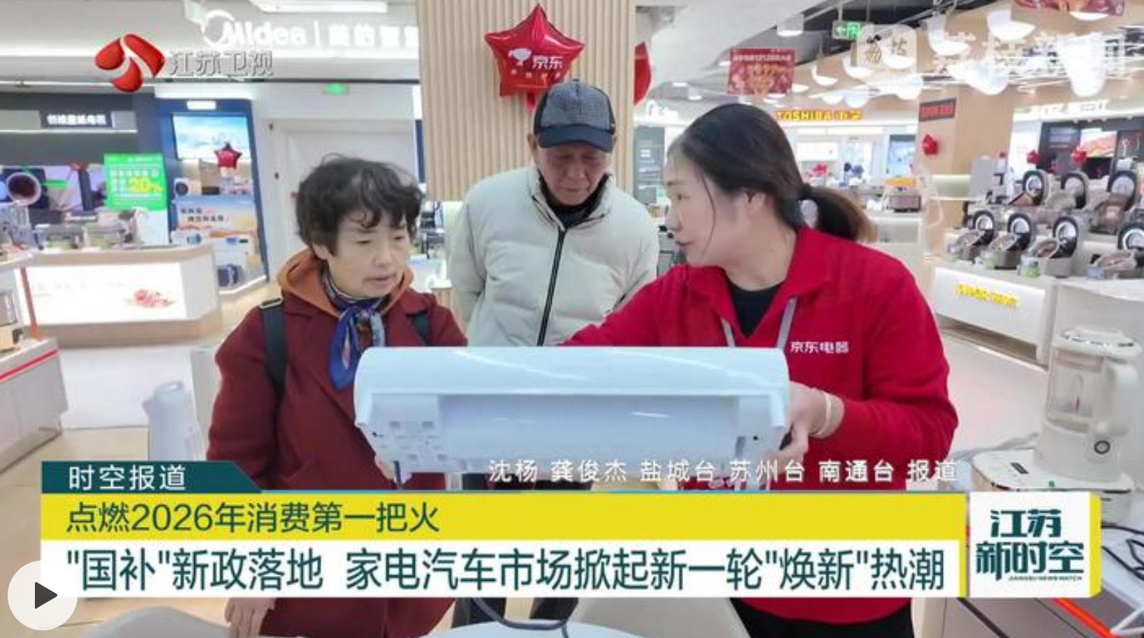新年伊始,国家2026年大规模设备更新和消费品以旧换新政策正式落地江苏,家电、汽车、数码智能产品市场迎来“开门红”。