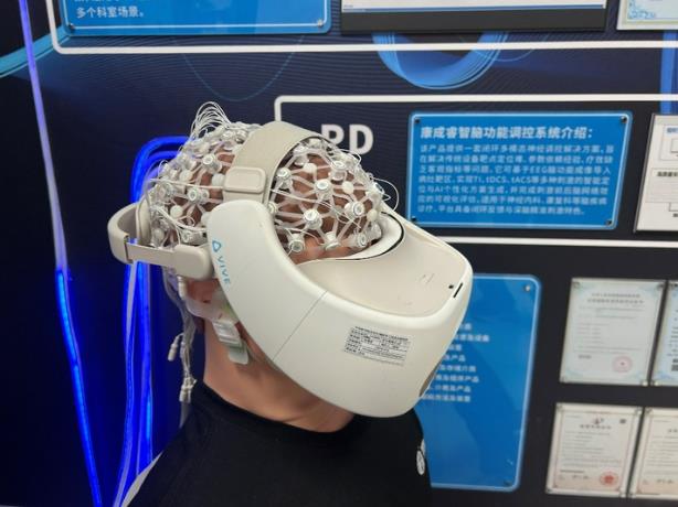 在戴亚康团队的实验室,记者看到了团队研发的最新款无线可穿戴脑电采集系统,2024年,记者也曾探访该团队实验室,相较于去年的产品,新款脑电帽更加精细,还新增了VR交互功能。