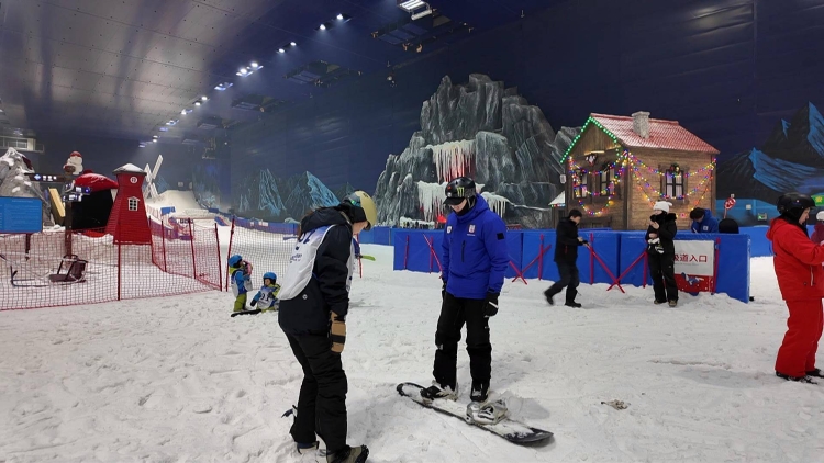 入冬以来,无锡融创热雪奇迹凭借完备的雪道设施、专业的教学服务,以及与商圈融合的多元体验,持续吸引着周边城市的滑雪初学者和运动爱好者前来。今年冬奥期间,江苏省青少年单板滑雪联赛(无锡站)也将在此举办。为了让更多人能够接触并了解冰雪运动,场馆不定期推出各类滑雪课程和活动。