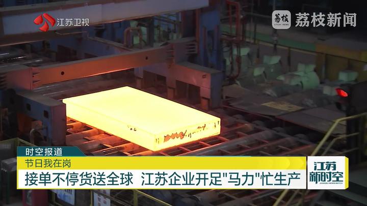 荔枝新闻中心记者郭艺说:“我现在是在南钢的生产车间,除夕当天这里依然是一副火热的生产景象。我手边这条生产线上,平均每五分钟就有一块五米宽厚板轧制完毕。”