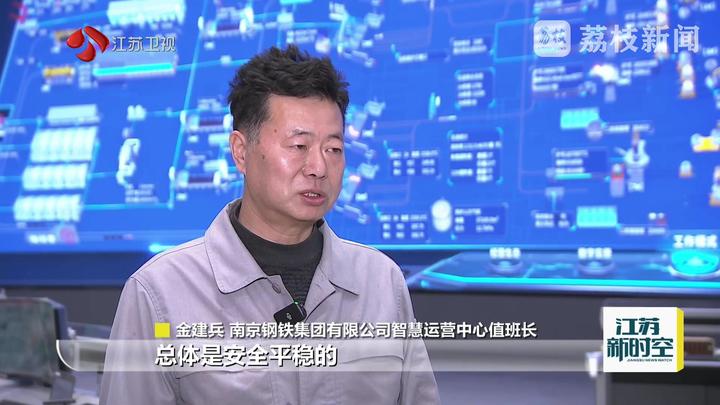 南京钢铁集团有限公司智慧运营中心值班长金建兵说:“智慧大厅每班有24个人值班,今天截至目前,铁生产已经达到17000吨,钢生产达到17500吨。从目前整个生产监测来看,总体是安全平稳的。”