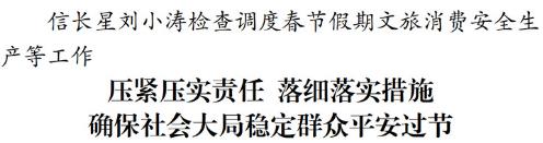 信长星强调,要根据假期特点,动态摸排、盯紧盯牢、及时消除各类风险隐患,严之又严、细之又细落实各项措施,切实筑牢安全防线。要加强烟花爆竹运输、储存、销售、燃放等各环节安全监管,严防超量储存、店外摆放、违规燃放等行为。要加强对高速公路、桥梁隧道、易堵和事故多发路段的监测、巡查、执法,提前做好返程高峰应对准备,保障群众平安便捷出行。要加强旅游景区全天候全方位监管,强化商场影院、宾馆民宿、餐饮娱乐、养老机构等密闭空间消防隐患排查整治,深化用气用电、建筑施工、化工生产等领域风险隐患排查治理。要加强大型活动安全管控,特别是对活动设施、狭窄空间、坡道台阶、“喇叭口”等风险点强化监管。要加强繁华商圈、热门景区、公交地铁、车站机场、公园广场等人员密集场所的安全防范,强化社会面巡防,全力维护社会安全稳定。各级各部门要严格执行值班值守制度,认真履行“一岗双责”,确保责任落实到岗位、落实到人头,遇有突发情况迅速响应、高效有序处置。