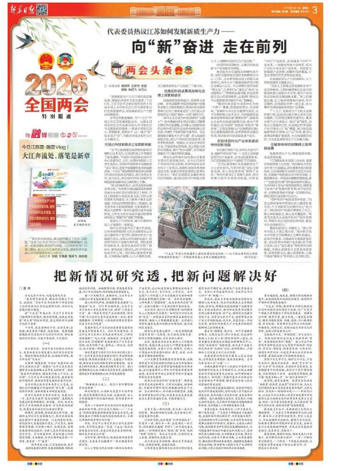 “要在研究新情况、解决新问题上下功夫、出经验。”习近平总书记参加十四届全国人大四次会议江苏代表团审议时,对经济大省提出殷切期望。