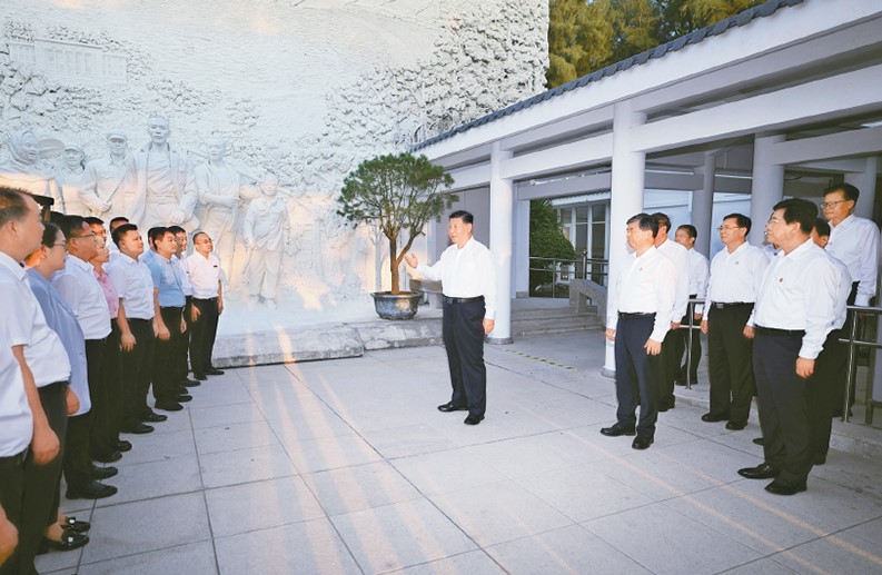 2024年10月15日至16日,中共中央总书记、国家主席、中央军委主席习近平在福建考察。这是15日下午,习近平在漳州市东山县谷文昌纪念馆考察时,同谷文昌干部学院教师、学员代表亲切交流。 新华社记者 鞠鹏/摄
